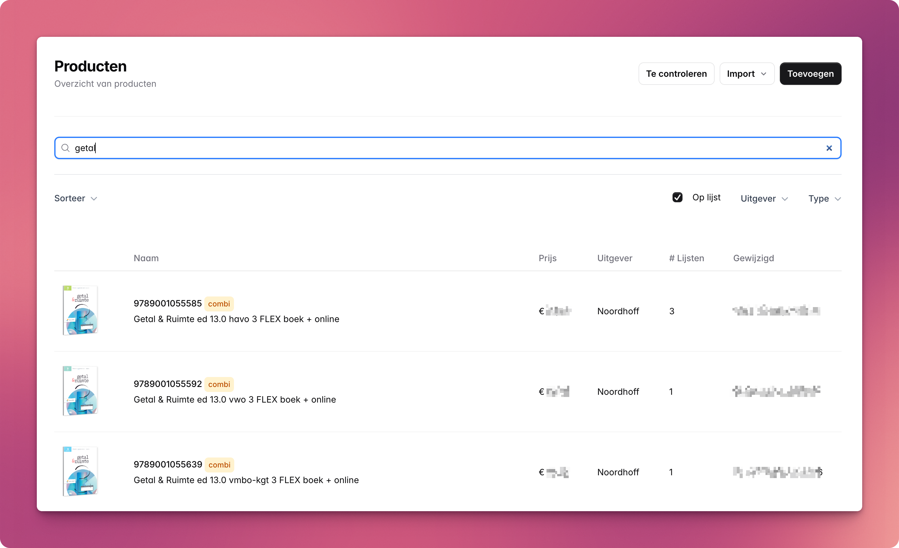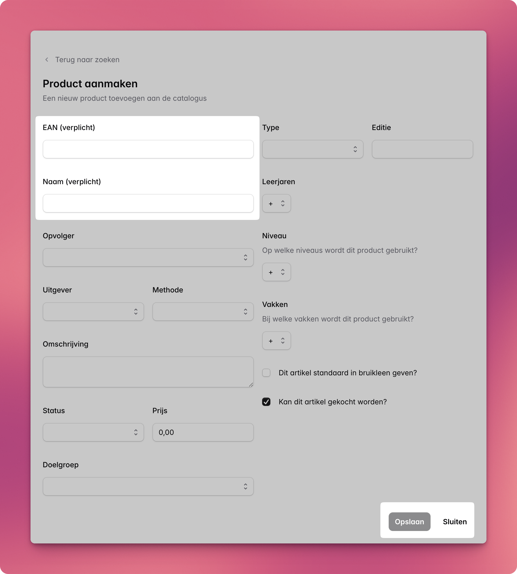 Klik op "Opslaan" om het product direct toe te voegen. Daarna kun je het betreffende product direct opzoeken en toevoegen aan de leermiddelenlijst.